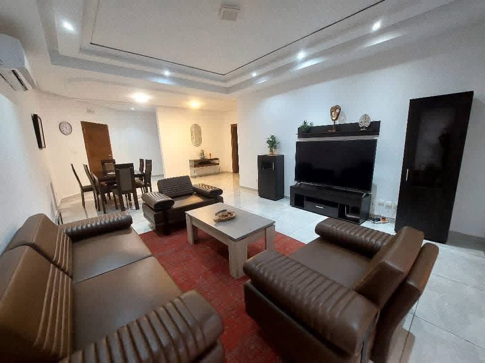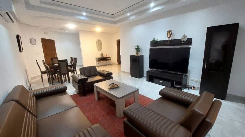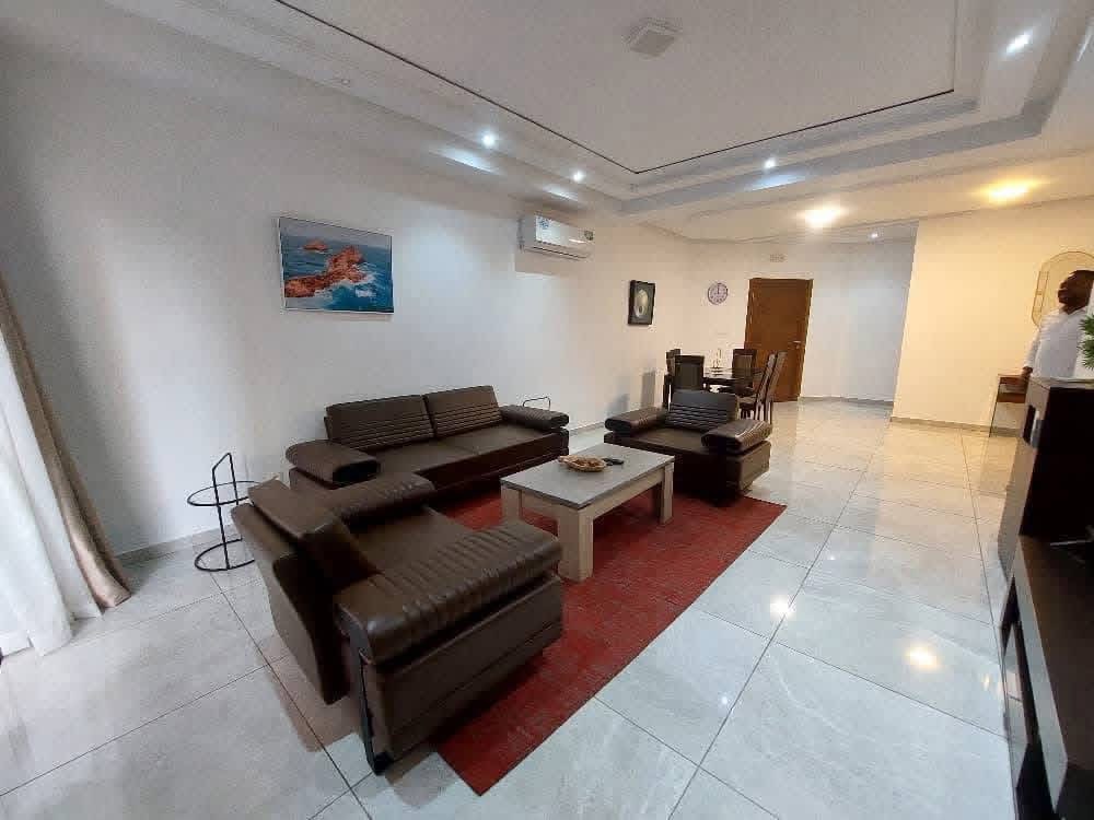Nous mettons en location deux appartements meublés 3 pièces de bon standing situés à la Riviera 4 non loin des écoles françaises et américaines. Les appartements sont idéalement logés dans un immeuble sécurisé à proximité des biens de première nécessité (Pharmacie, Supermarché, boutique, restaurant…).