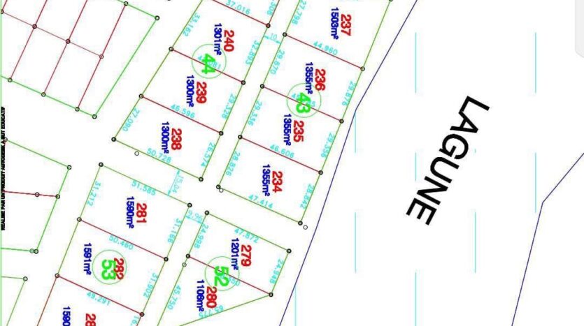 Plusieurs terrains de plus de 1000m2 pied dans l’eau au bord de la lagune. situé à Assinie mafia kilomètres 17. Zone déjà habitée, site à proximité de la maison de l’ancien premier ministre (voir vidéo ci-dessus)